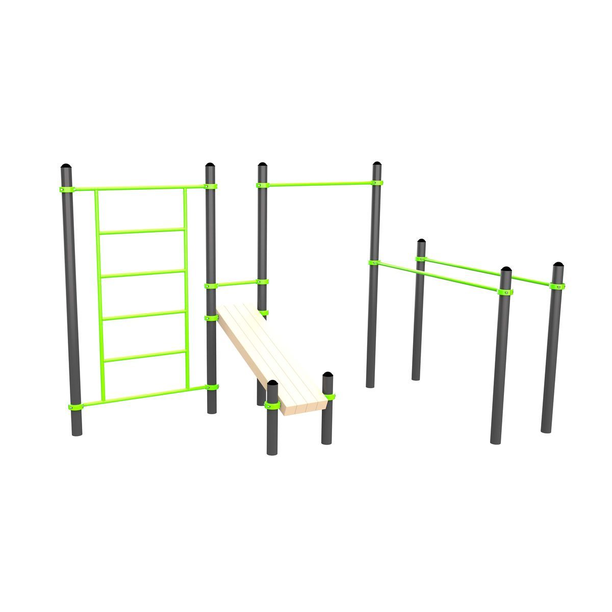W261 Воркаут (3 турника, 2 скамьи для пресса, брусья, швед. стенка, кольца, канат) ZAVODSPORTA