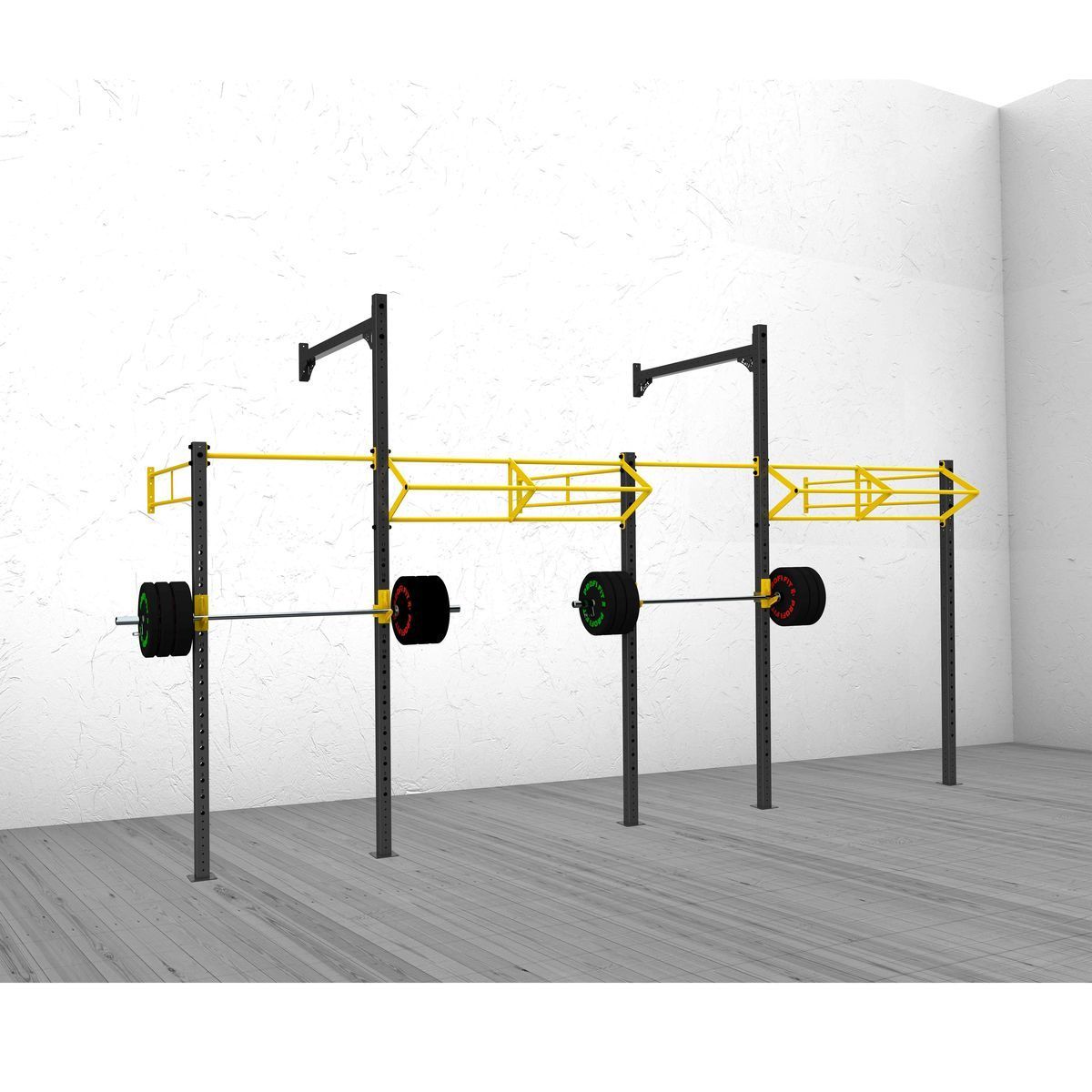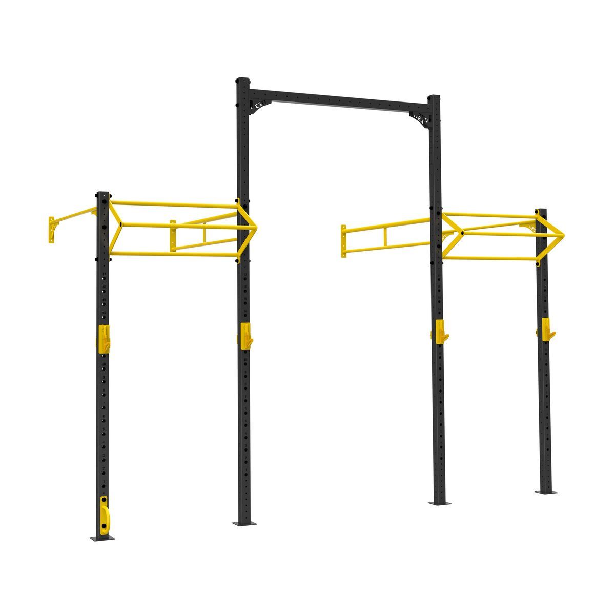 А0324 Функциональная рама 1100-1100.Функциональная рама для кроссфита – неотъемлемый атрибут любого crossfit-зала, универсальное решение необходимое для проведения комплексных тренировок и выполнения силовых упражнений.Основные элементы рамы выполнены из профильной трубы 80*80*3 мм,трубы d32 мм и листов металла 8 и 10 мм. Состав:Стойка перфорированная 80х80, ZSO-2680 — 4 шт Перекладина двойная d32/48, ZSO-1100- 2 шт Перекладина одинарная d32, ZSO-1100 — 2 шт Крюки для штанги, ZSO, (пара)- 2 шт