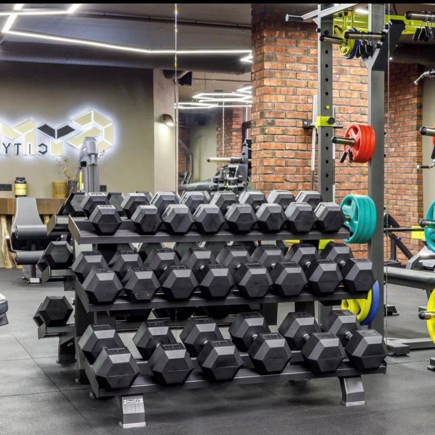 На стойке для гантелей можно разместить по паре гексагональных обрезиненных гантелей от 2 до 30 кг. Точное количество пар гантелей зависит от веса размещаемых гантелей. Максимальная нагрузка 500 кг.