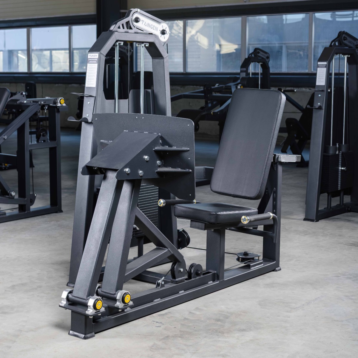 Профессиональный тренажёр TANGEN A2003 Жим ногами предназначен для тренировки мышц ног с акцентом на квадрицепсы, ягодичные мышцы и заднюю поверхность бедра. Конструкция обеспечивает стабильное положение корпуса и контролируемую траекторию движения, что позволяет безопасно работать с отягощением в широком диапазоне нагрузок.