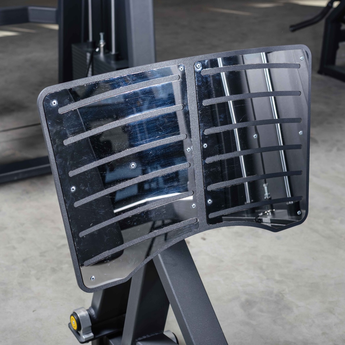 Платформа для жима оснащена двумя металлическими пластинами с рифлёной поверхностью для повышения сцепления и защиты рабочей зоны от износа.