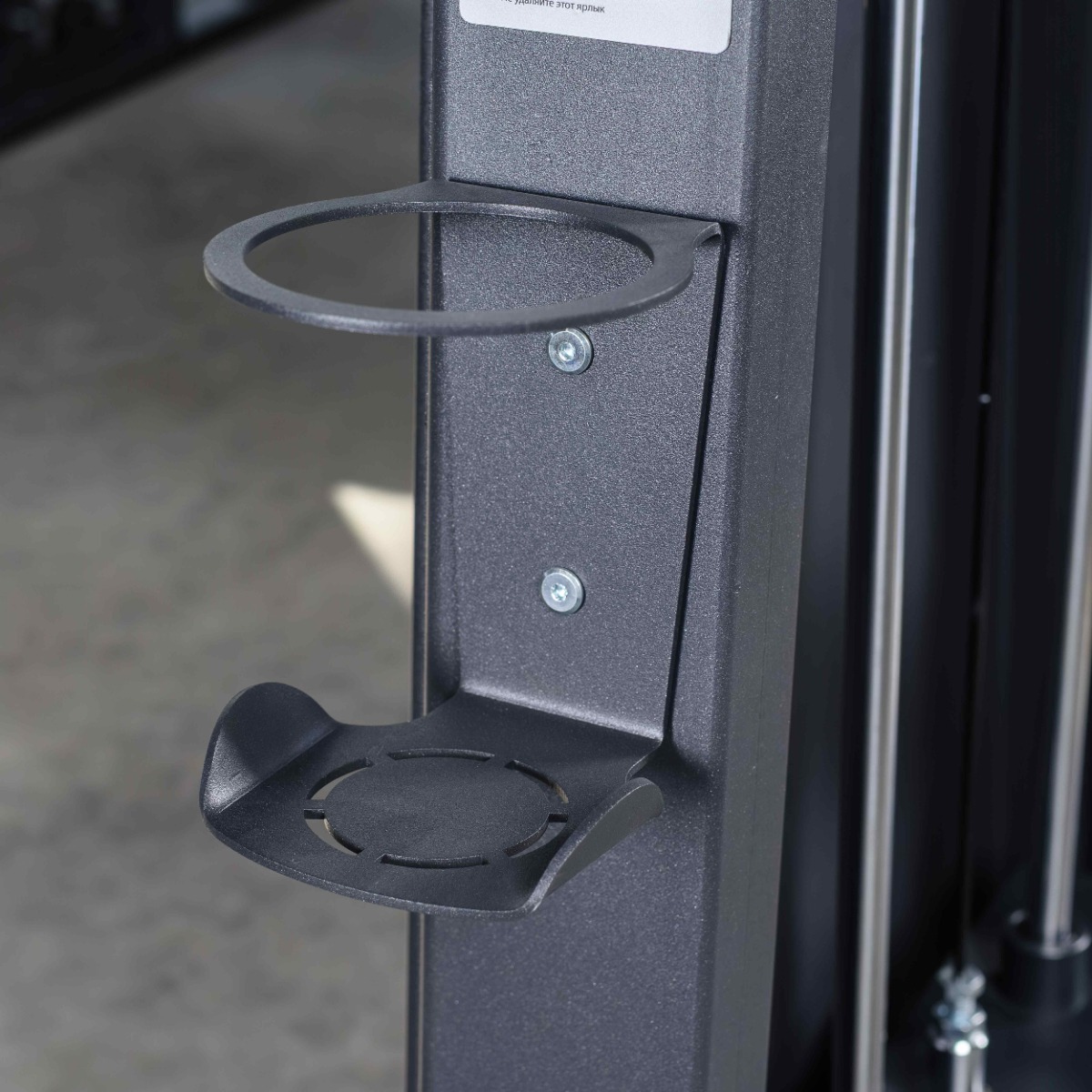 На раме тренажера закреплён металлический держатель для личных вещей.