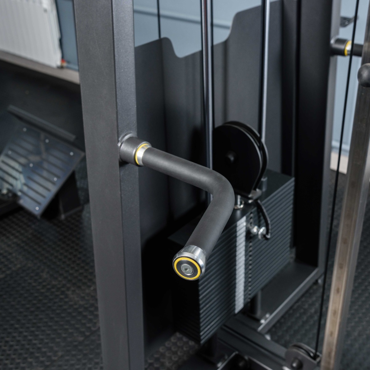 1 турник с узким хватом с резиновым покрытием и декоративными заглушками – наконечниками, зафиксированными болтами.