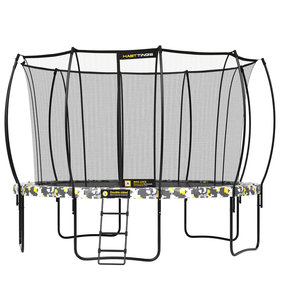 — Батут Proxima Premium оборудован удобной лестницей из двух ступеней, которая позволит с легкостью на него забраться даже маленьким прыгунам.