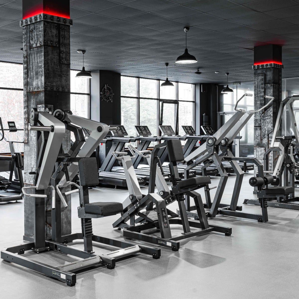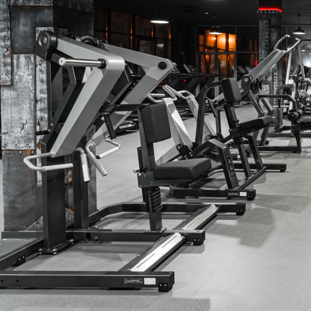 Накопители на подвижных рычагах и статичные для хранения оборудованы кольцами из плотной резины для предотвращения соприкосновения дисков с рамой тренажера и амортизации при размещении свободных весов на накопителях.