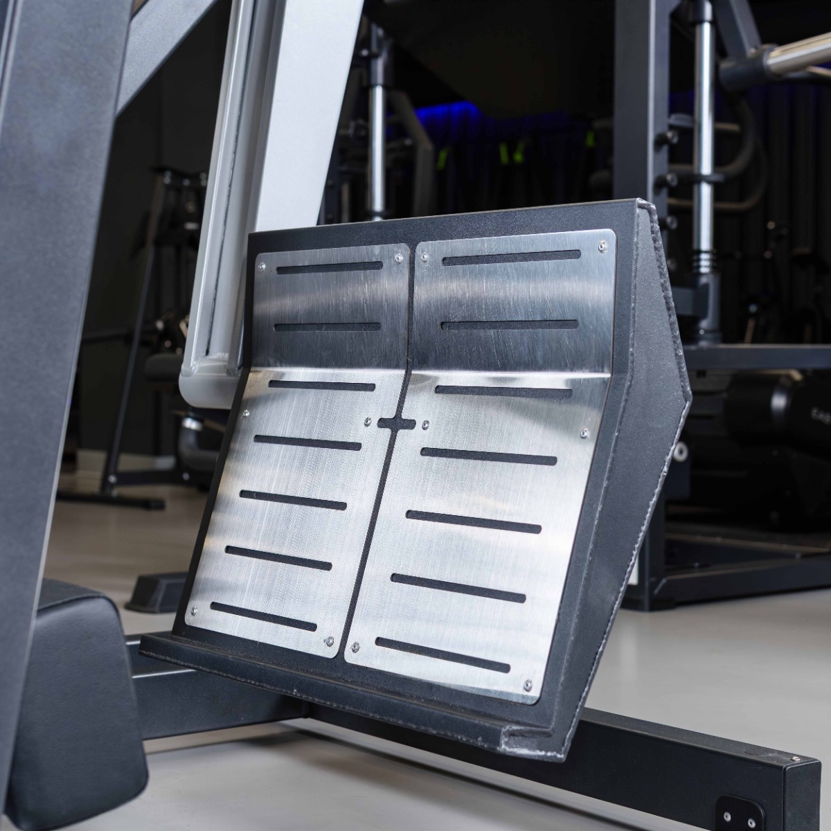 Платформа для толчка выполнена из металлического основания 590×445 мм, оборудована двумя пластинами из нержавеющей стали, закрепленными при помощи болтов. Размер каждой пластины 270×450 мм.