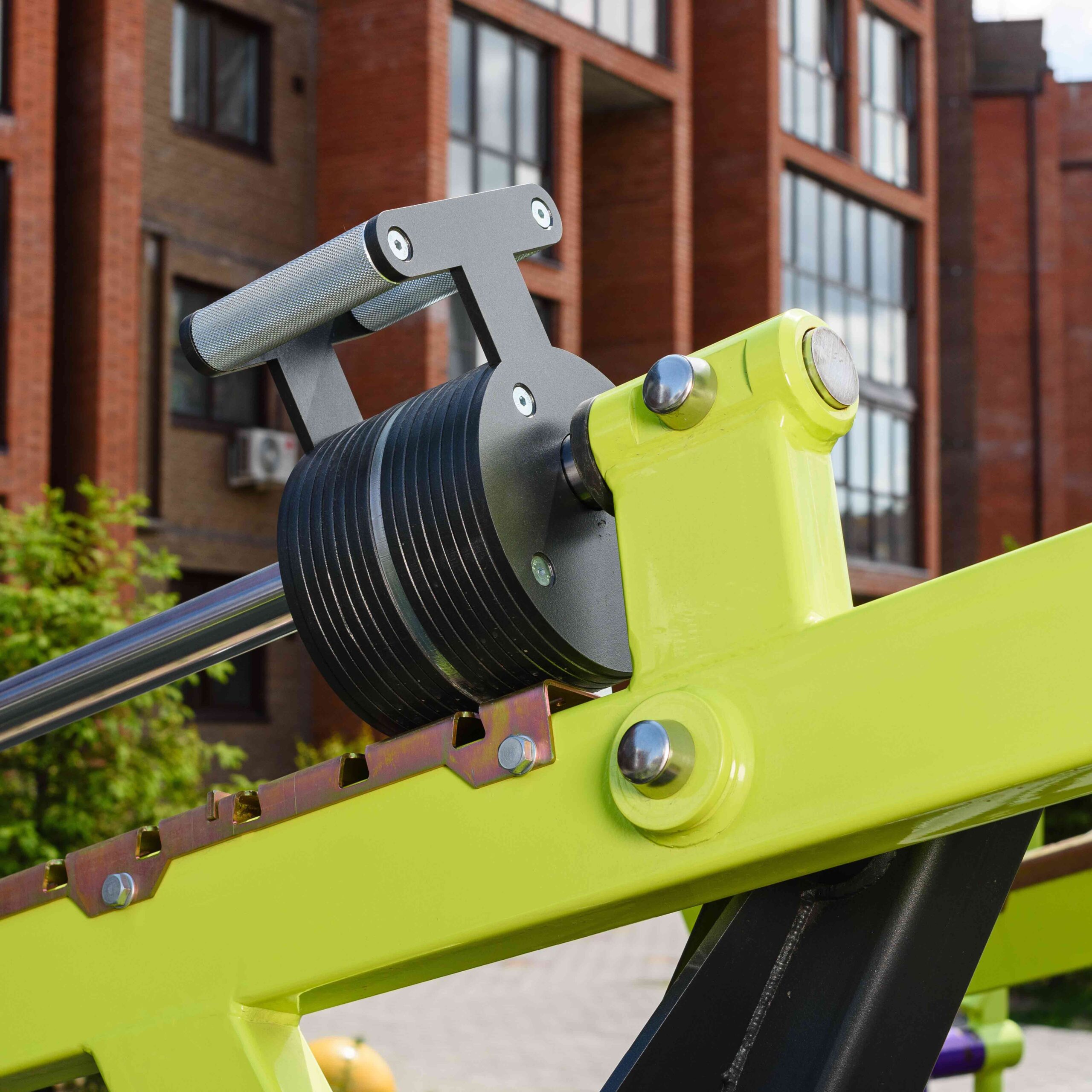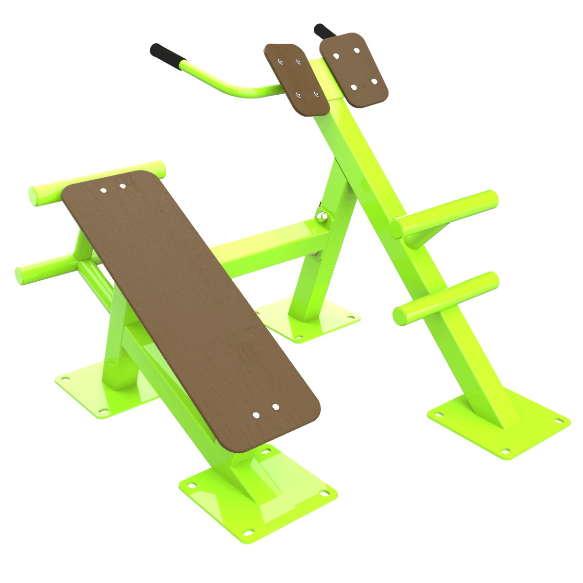 Надёжность и прочность разъёмных соединений конструктивных элементов оборудования обеспечиваются за счёт использования высококачественного оцинкованного крепежа, выступающие части которого защищены антивандальными хромированными заглушками из стали толщиной 1 мм.