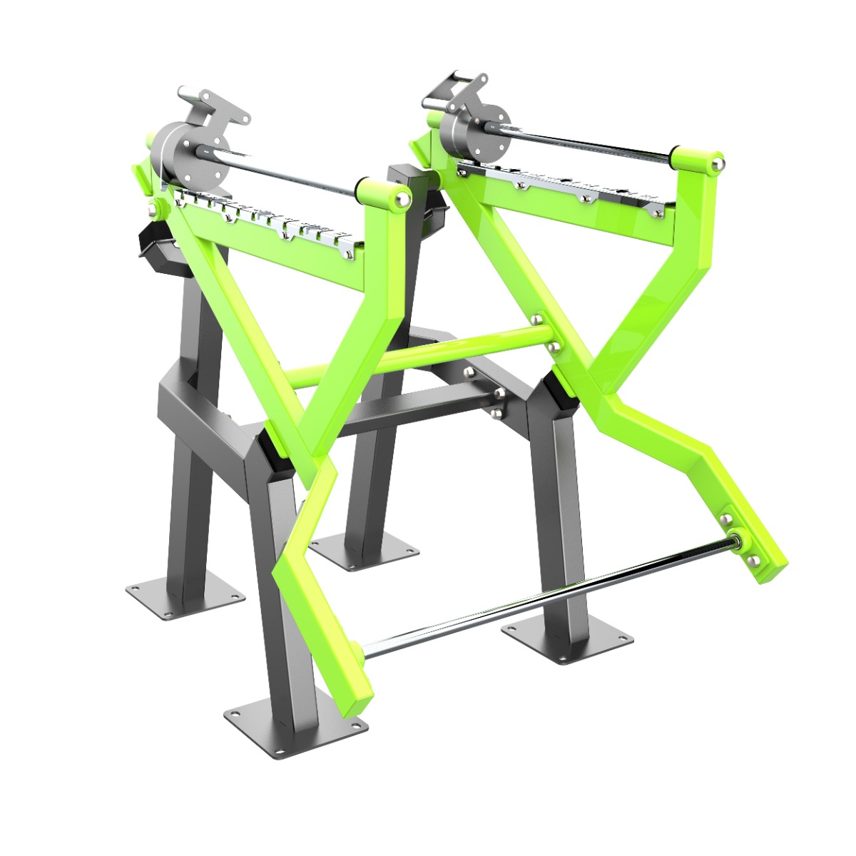 При изготовлении деталей используются высокоточные станки лазерной резки, что обеспечивает точность линейных размеров, корректное позиционирование элементов в сборочных узлах и стабильность геометрии конструкции тренажёра.