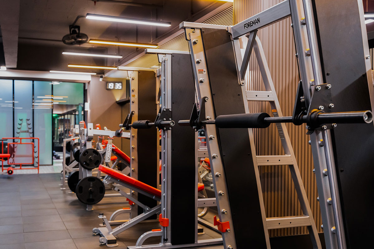 - Благодаря применению специальных подшипников движение грифа осуществляется плавно.
