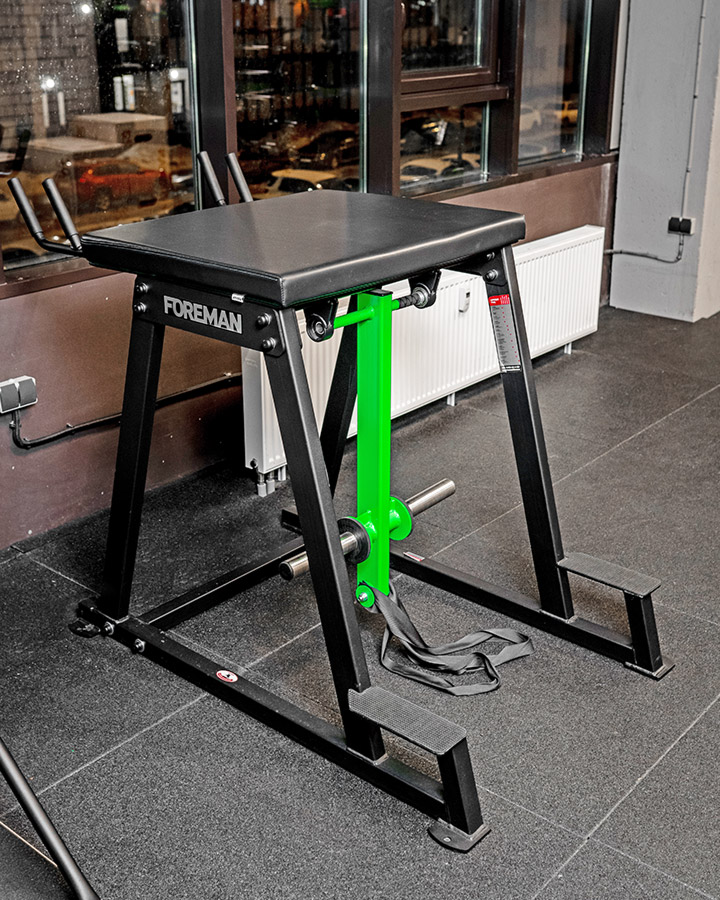 - Тренажер оборудован стальными опорными ножками с отверстиями для фиксации к полу.