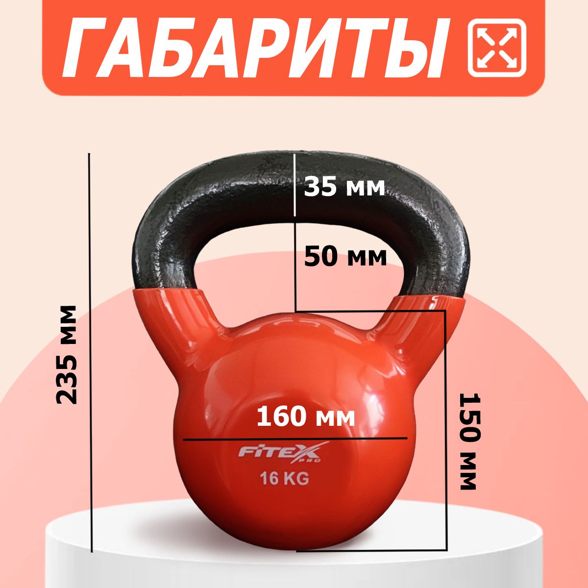 Гиря FITEX PRO сделана из чугуна и имеет плотное виниловое покрытие, которое не окрашивает стены и пол, снизит шум и убережет кожу рук от раздражения.