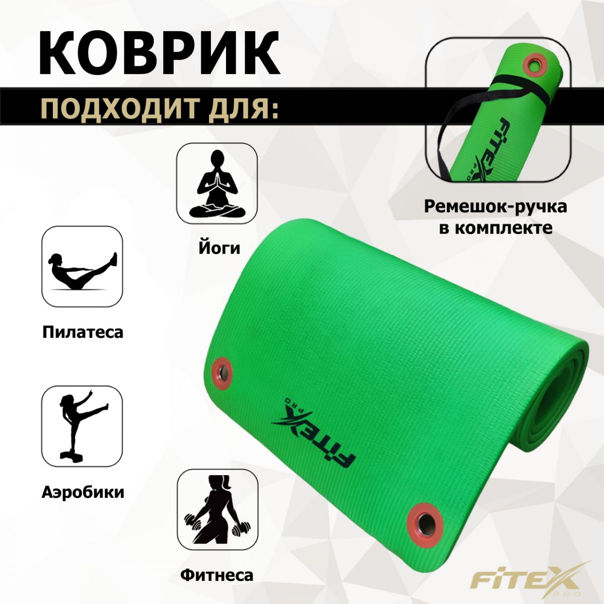 Мат гимнастический 180х60х1.25 см FITEX PRO изготовлен из вспененного материала поливинилхлорида.