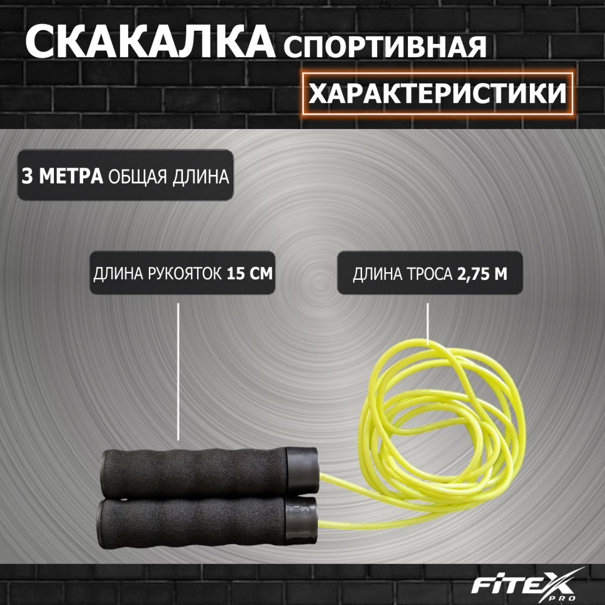 Скакалка с утяжелением на подшипниках FITEX PRO (2750 х 5 мм, ПВХ) отличается от простой скакалки наличием металлических стержней в ручках весом 2 х 250грамм.