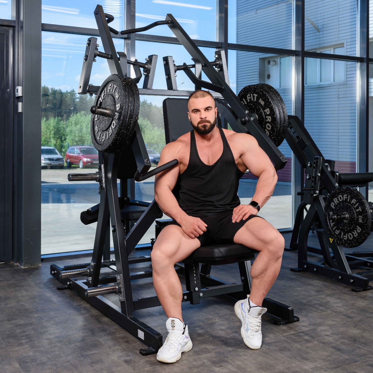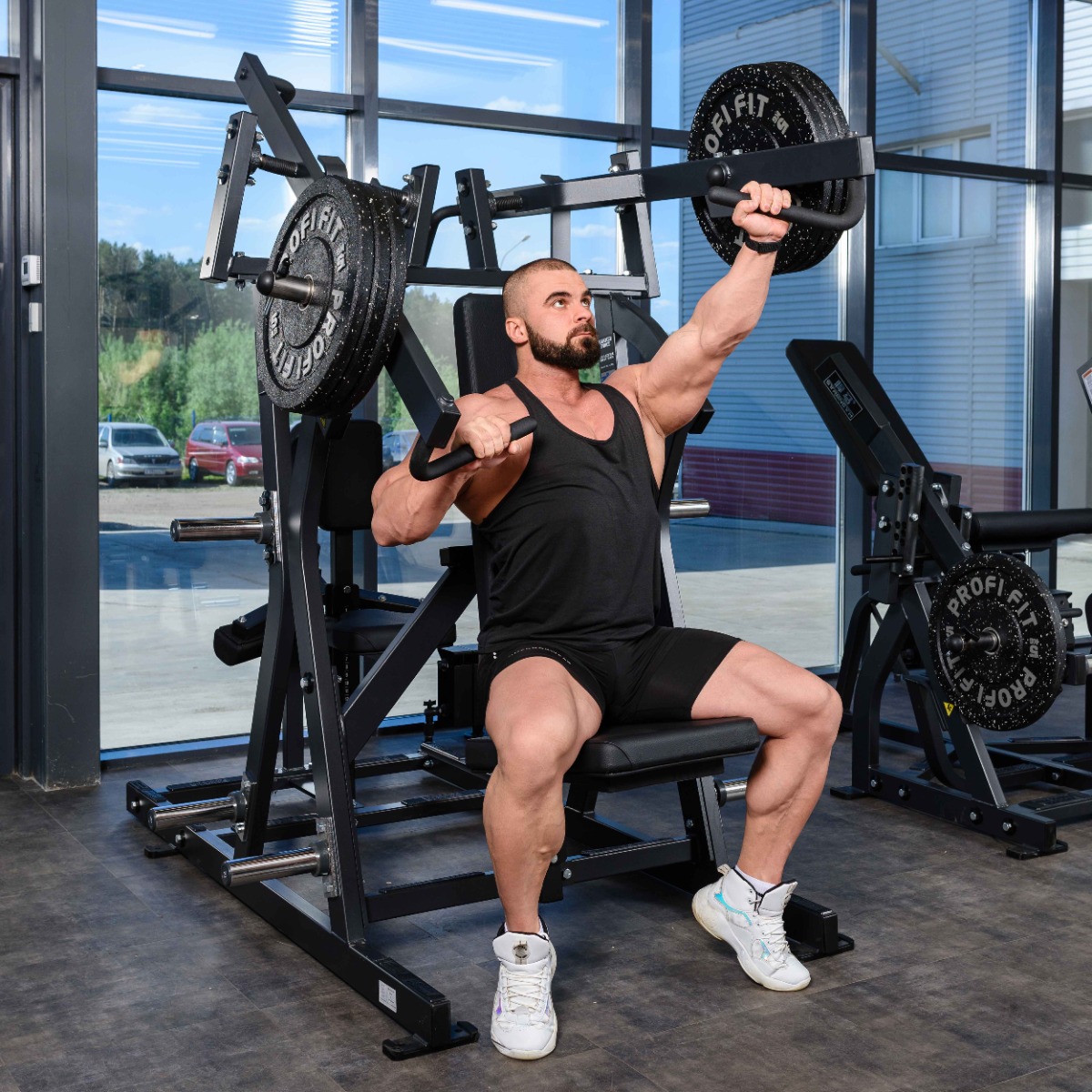 Профессиональный тренажер для коммерческого использования SM2002 Независимый жим от груди / Тяга сверху предназначен для базовых и изолирующих упражнений на верхние группы мышц.