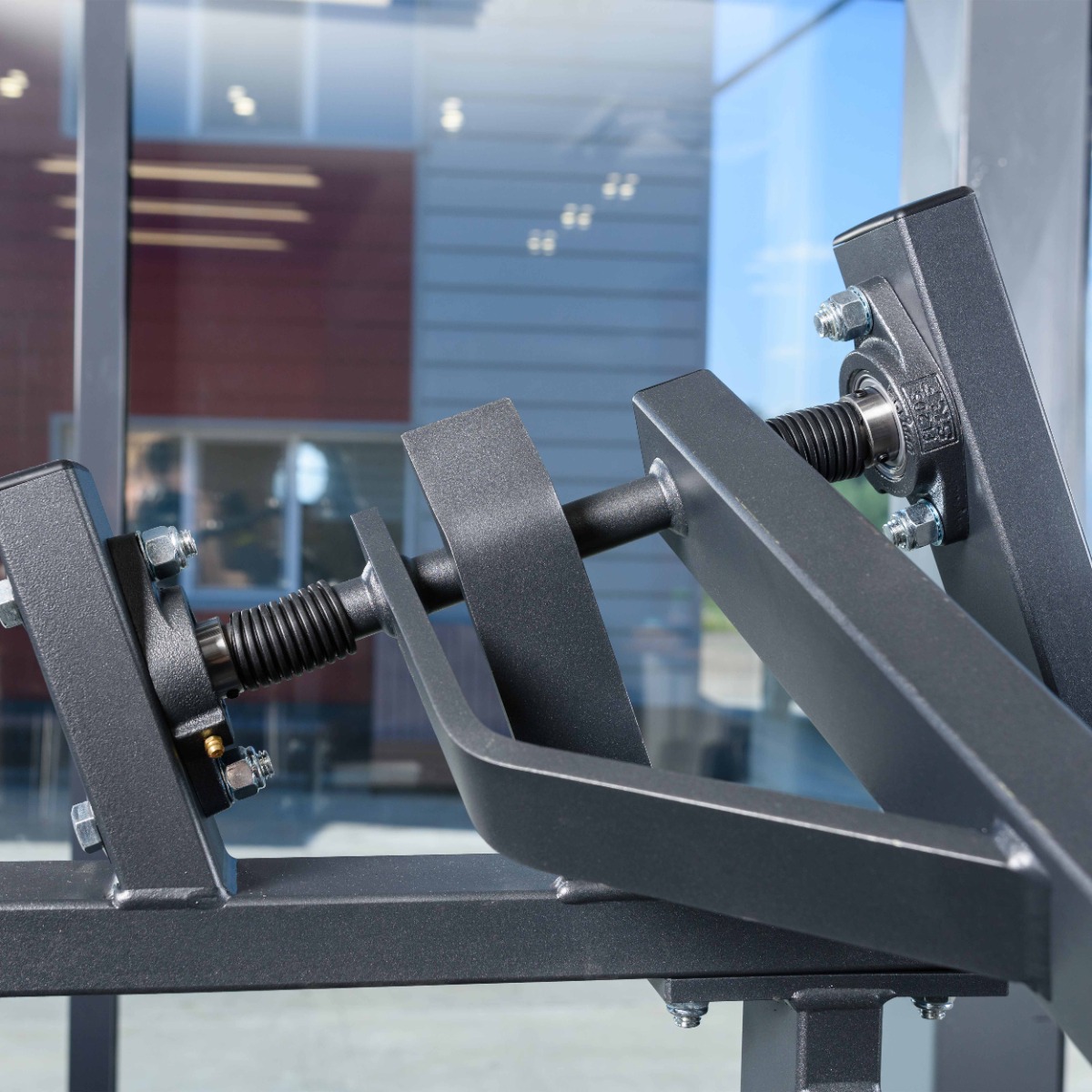 Два хромированных накопителя под углом на подвижных рычагах длиной 270 мм (рабочая длина 245 мм), диаметром 48 мм оборудованы металлическими держателями для фиксации свободных весов. Стартовое сопротивление 5 кг на один рычаг. На торцах накопителей установлены заглушки из пластика.