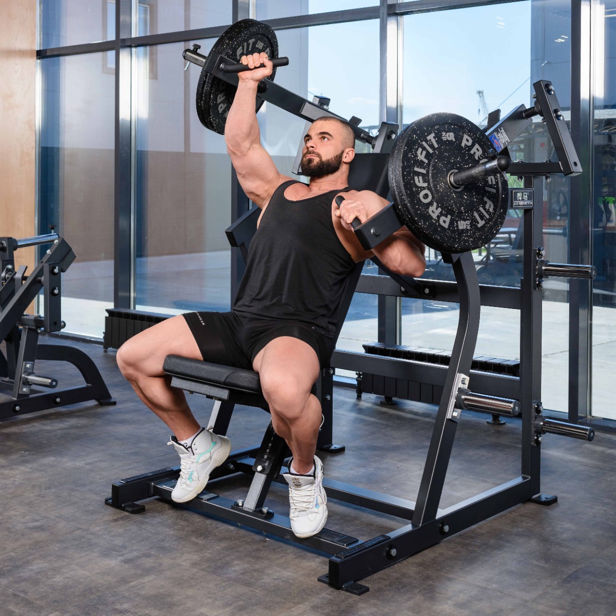 Профессиональный тренажер для коммерческого использования SM2013 Независимый жим широким хватом на верх груди предназначен для базовых и изолирующих упражнений на верхние грудные мышцы – большие грудные и передние дельтовидные.