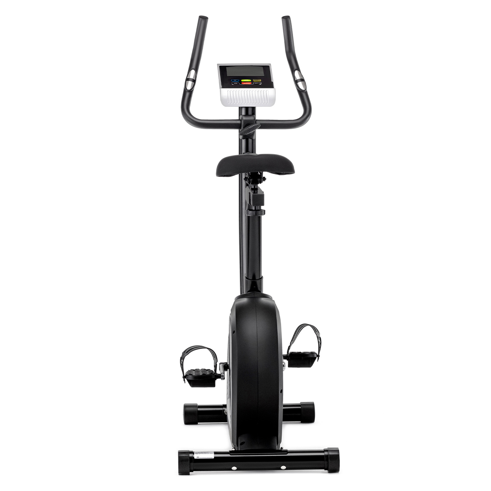 Следить за прогрессом помогает компактный LCD-дисплей, который отображает все ключевые показатели: время, скорость, расстояние, калории. общая дистанция, включая пульс — данные которого снимаются с кардиодатчиков, встроенных в рукоятки. Особого внимания заслуживает система Active Duo™. Она не только позволяет плавно увеличивать сопротивление, но и оснащена функцией мгновенной остановки маховика для полного контроля безопасности. Есть удобный держатель для бутылки.