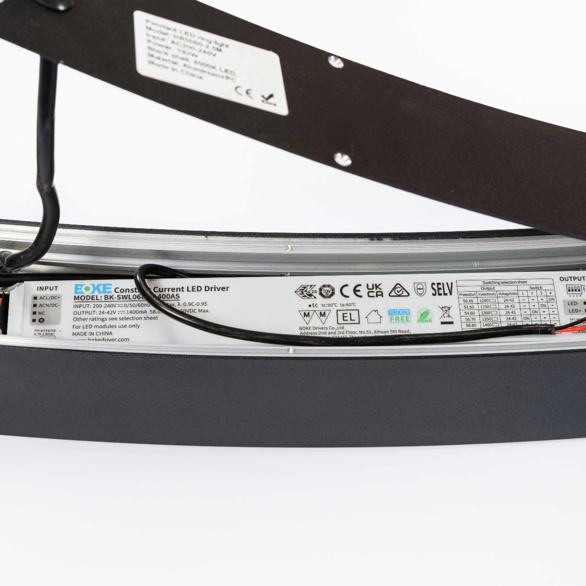 Драйвер (встроенный): AC200–240В, 50/60Гц, обеспечивает стабильную работу без мерцания, имеет защиту от перегрузки и скачков напряжения.