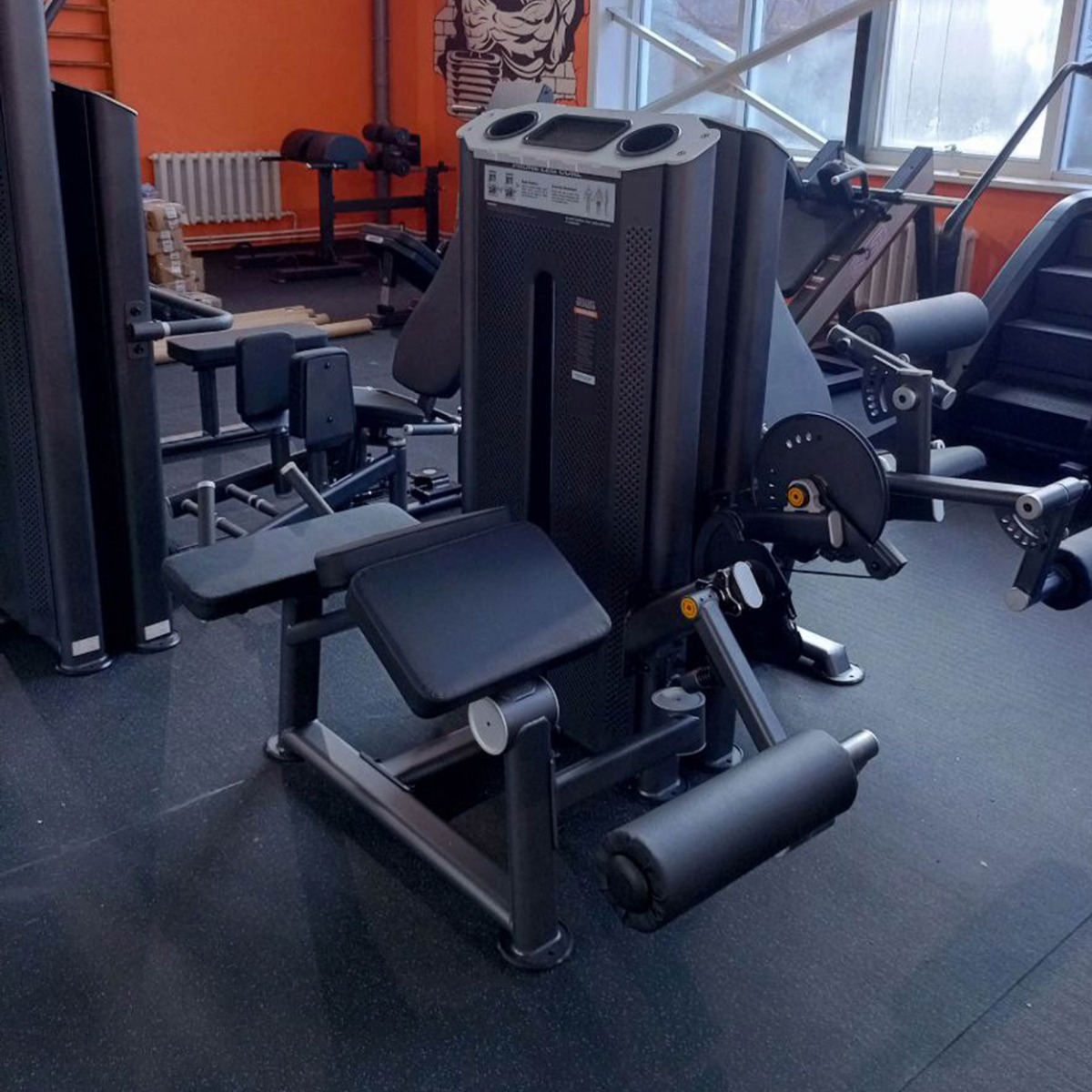 Четыре подпятника круглой формы выполнены из листового металла с резиновыми защитными кожухами, обеспечивают устойчивость тренажера и предохраняют напольное покрытие от повреждений.