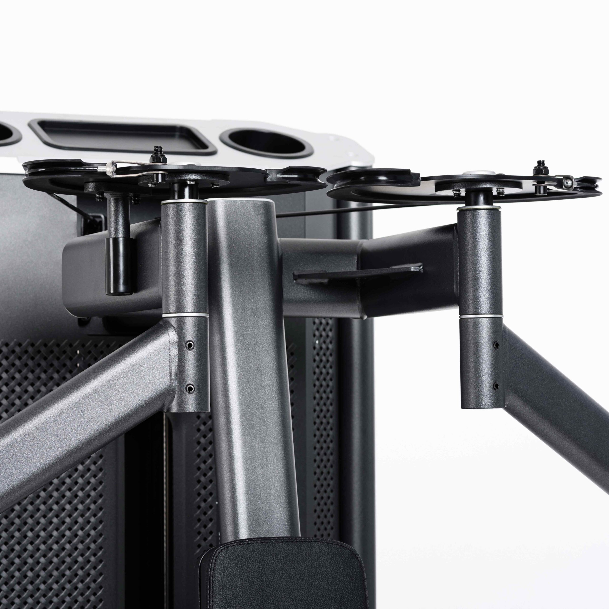 Прорезь в защитном кожухе грузоблока для доступа к регулировке нагрузки шлифованная с завальцованными внутрь гранями по всему периметру для безопасного доступа к весовому стеку и обеспечения дополнительной жёсткости рамы грузоблока.