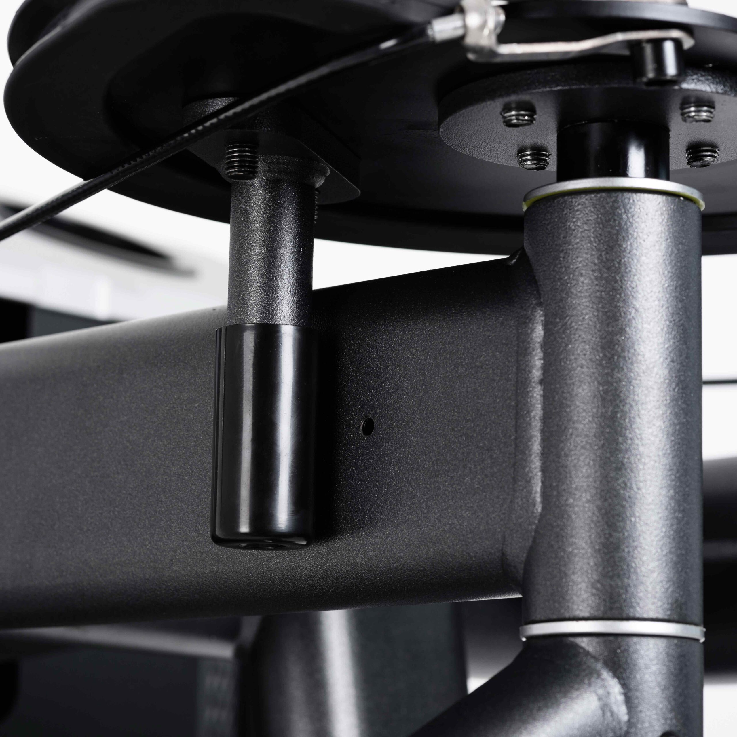 Три подпятника круглой формы выполнены из листового металла с резиновыми защитными кожухами, обеспечивают устойчивость тренажера и предохраняют напольное покрытие от повреждений.