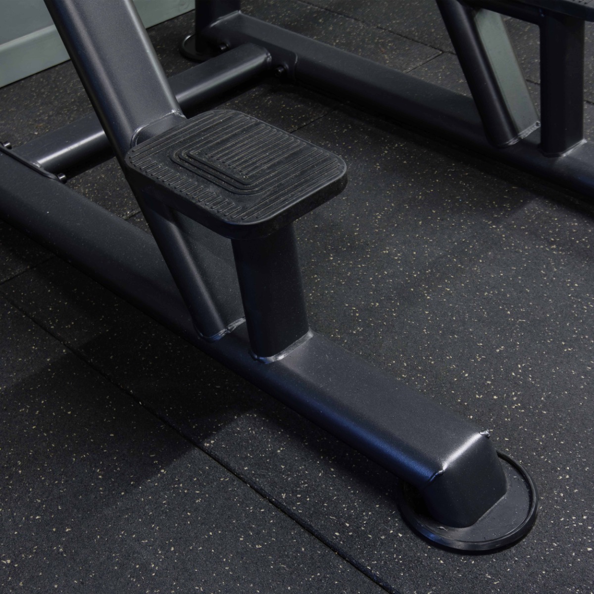 На ступени для доступа к тренажеру нанесено резиновое нескользящее покрытие с рифленой поверхностью.