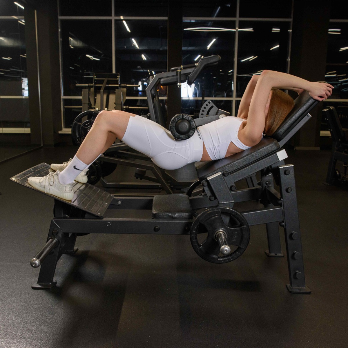 Тренажер безопасно и даже без отягощения нагружает именно ягодицы и заднюю поверхность бедра.
