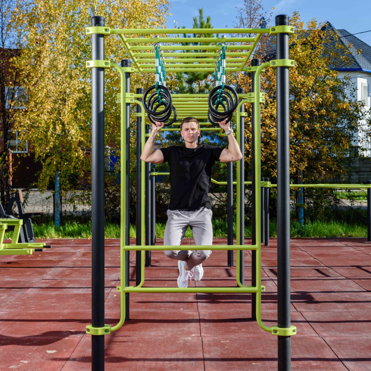 Уличный Рукоход с изменением высоты с подвижными кольцами (разноуровневый) ZAVODSPORTA* предназначен для установки на уличных спортивных площадках с учетом интенсивной эксплуатации в разных климатических условиях.
